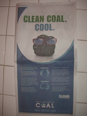 While browsing through this morning’s Wall Street Journal (20 January 2009) I could not help noticing the below full page ad from Peabody Coal which claims to be the world’s largest private sector coal company. It was in a prominent location for the the political junkie class – a special Inauguration section that might end up being retained as a keepsake.