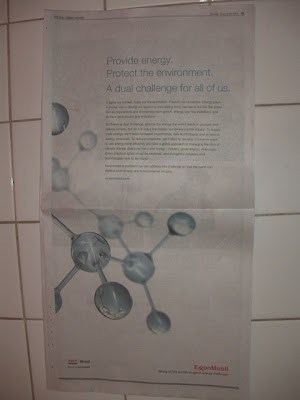 Peabody is not the only fossil fuel company that is talking up its contributions to the environment in a place that is aimed at reaching decision influencers holding office or serving on the staffs of those in office. Below is another full page ad from ExxonMobil, the world’s largest private sector oil company in the same special section, just a couple of pages in front of the Peabody ad.