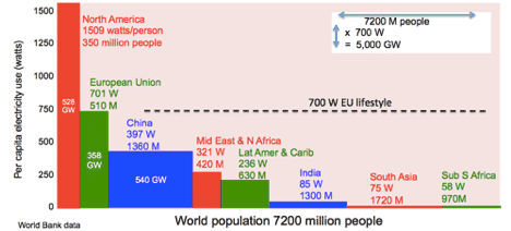 - Tripling of electric consumption to 2100 W/person as it substitutes for fossil fuel burning