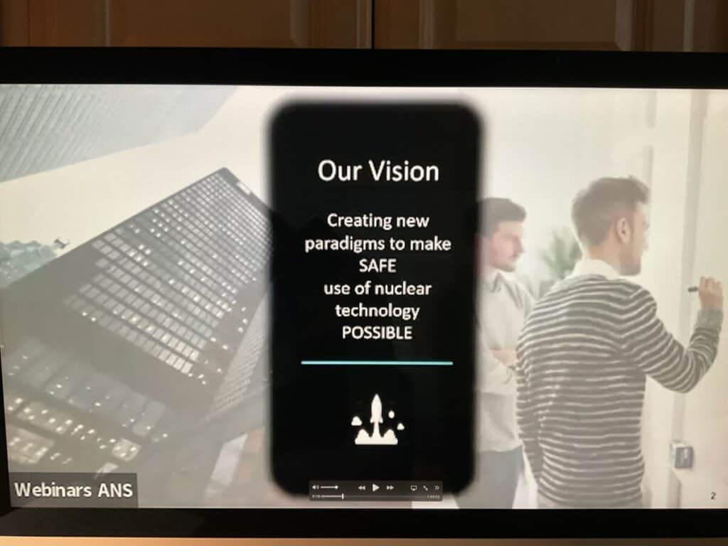 He offered the following statement: “Our Vision: Creating new paradigms to make SAFE. use of nuclear technology possible.”