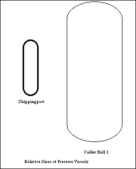Fortunately for the gas cooled reactor designers, they only needed pressure vessels able to operate under pressures of 8 bar instead of 150 bar. Instead of needing a shop manufactured vessel with 22 cm thick walls, the reactor at Calder Hall only needed walls that were slightly more than 5 cm thick.